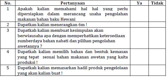 - Menjelaskan ide dan peluang usaha pegolahan makanan dari bahan hewani.